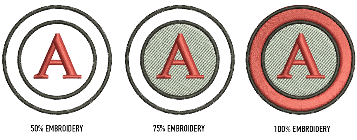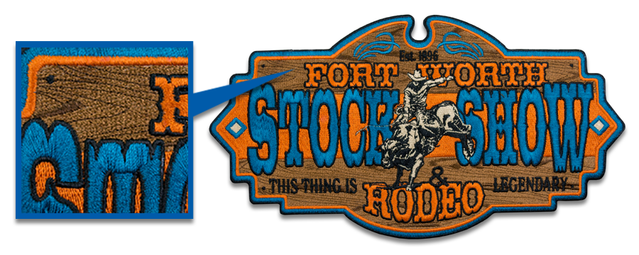 Custom embroidered patches are available in simple shapes with a merrowed border or complicated cuts with a satin stitched border. Great alternative to direct embroidery.